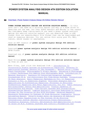 Free Download Power System Analysis And Design 4th Edition Solution Manual Doc By Click Button. Power System Analysis And Design 4th Edition Solution Manual it’s easy to recommend a new book category such as Novel, journal, comic, magazin, ect. You see it and you just know that the designer is also an author and understands the challenges involved with having a good book. You can easy klick for detailing book and you can read it online, even you can download it